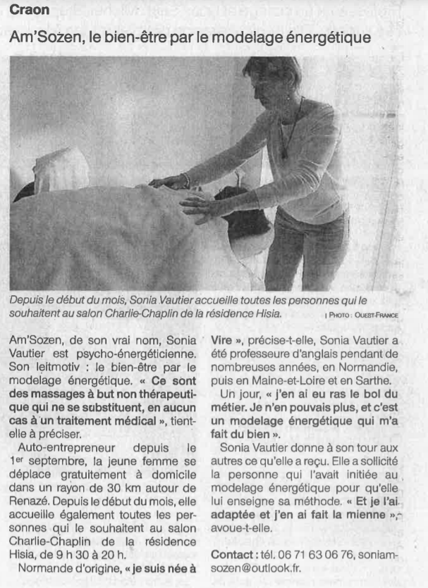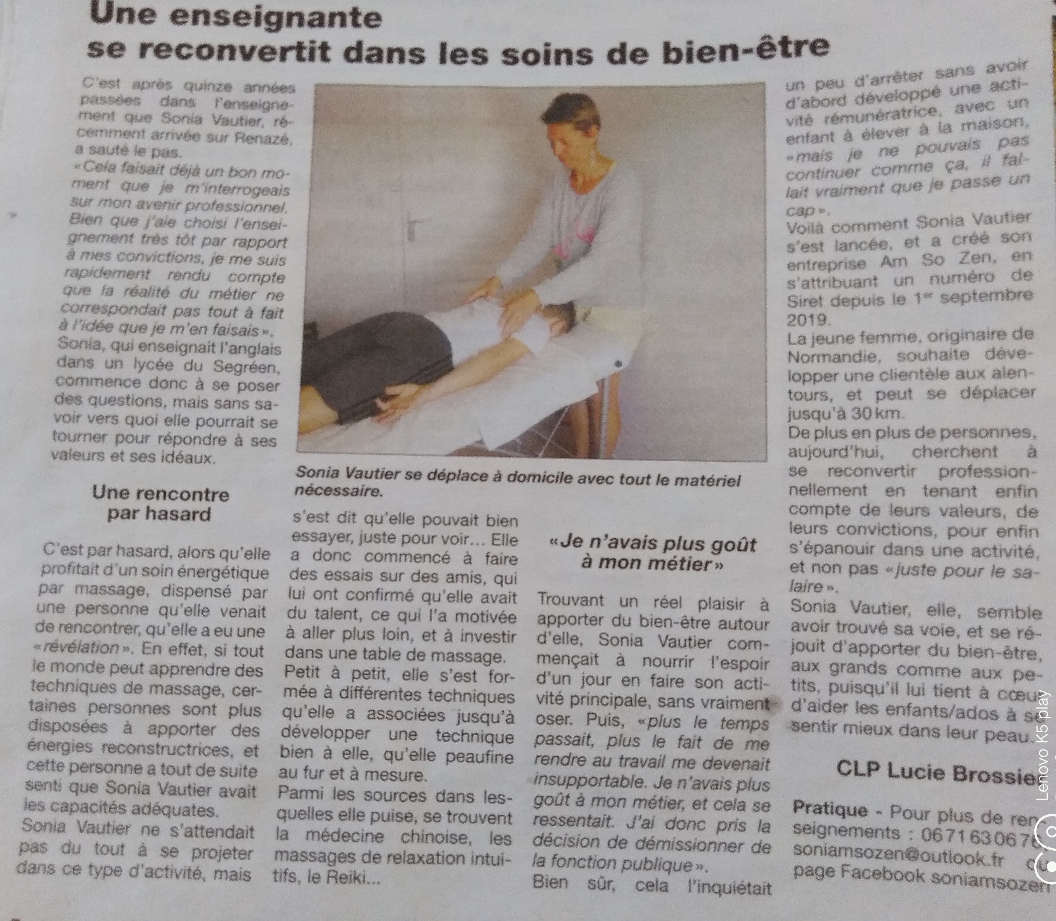 Et puis je décide de me reprendre en mains, de prendre soin de moi. Je rencontre une énergéticienne qui m’enseigne son métier. S’ensuivent des formations massage bien-être, énergétiques et des rencontres magnifiques.